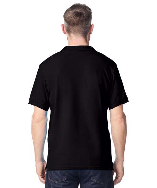 Combed Ringspun cotton double piqué knit. Side seamed with side vents. Contoured welt collar and cuffs. Tearaway label. Rolled forward topstitched shoulder. Clean finished placket with reinforced bottom box. 3 colour-matched buttons. Twin needle bottom hem.